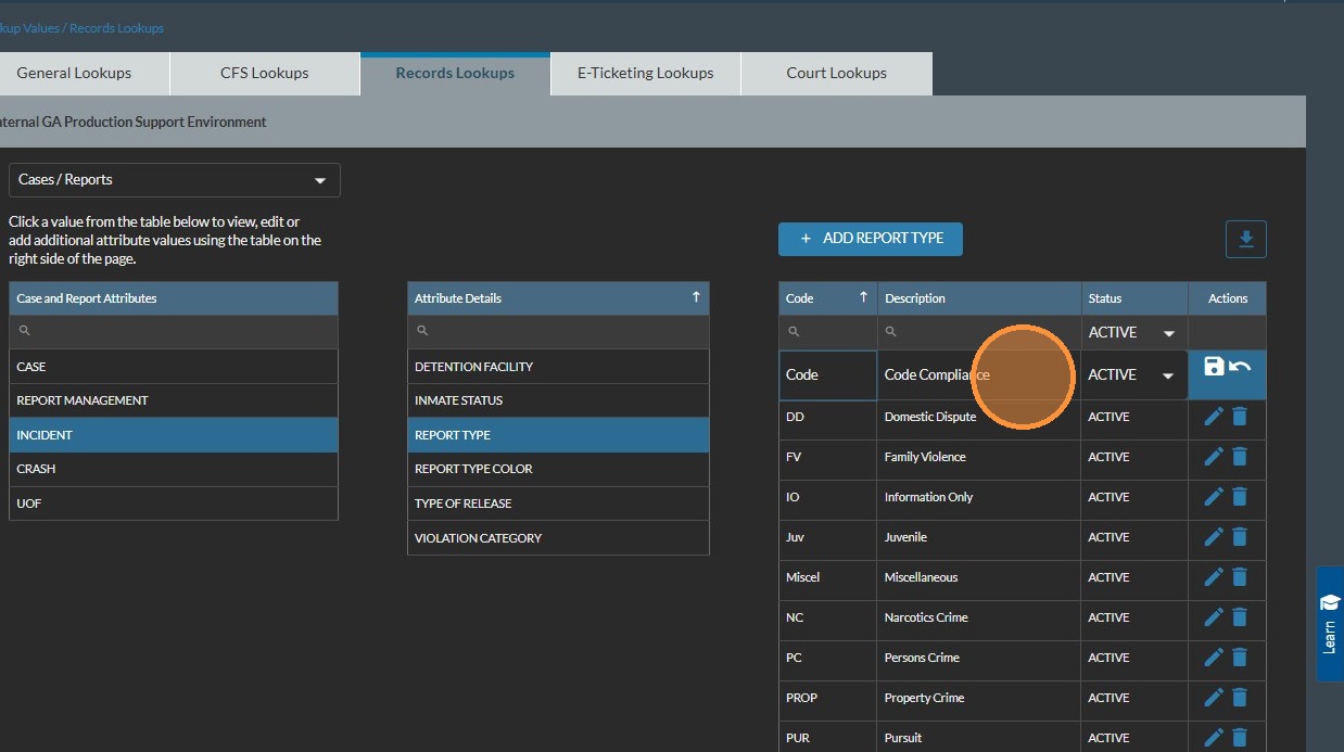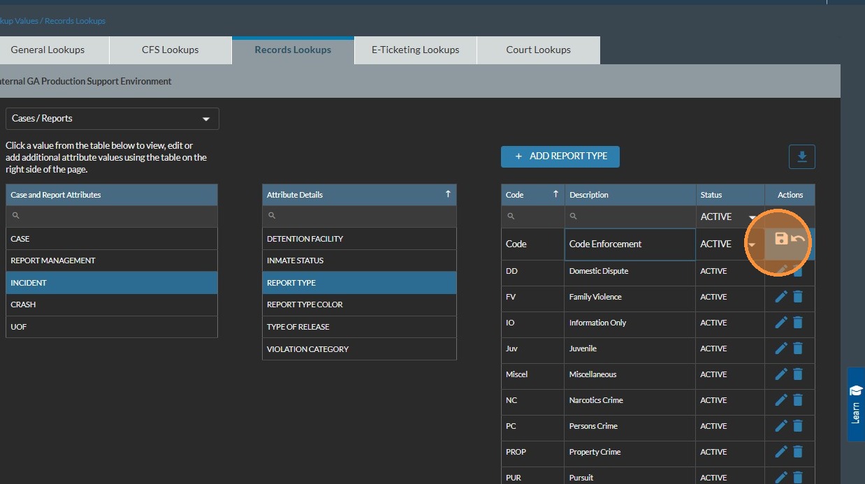Change a Report Type in JusticeONE Admin Portal