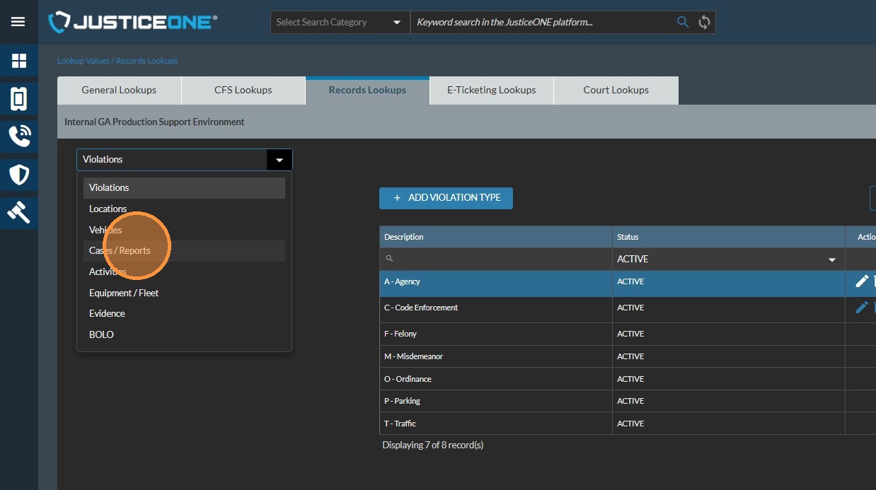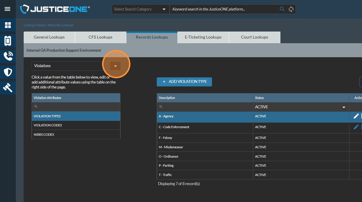 Adding a Violation Code in JusticeONE Admin Portal
