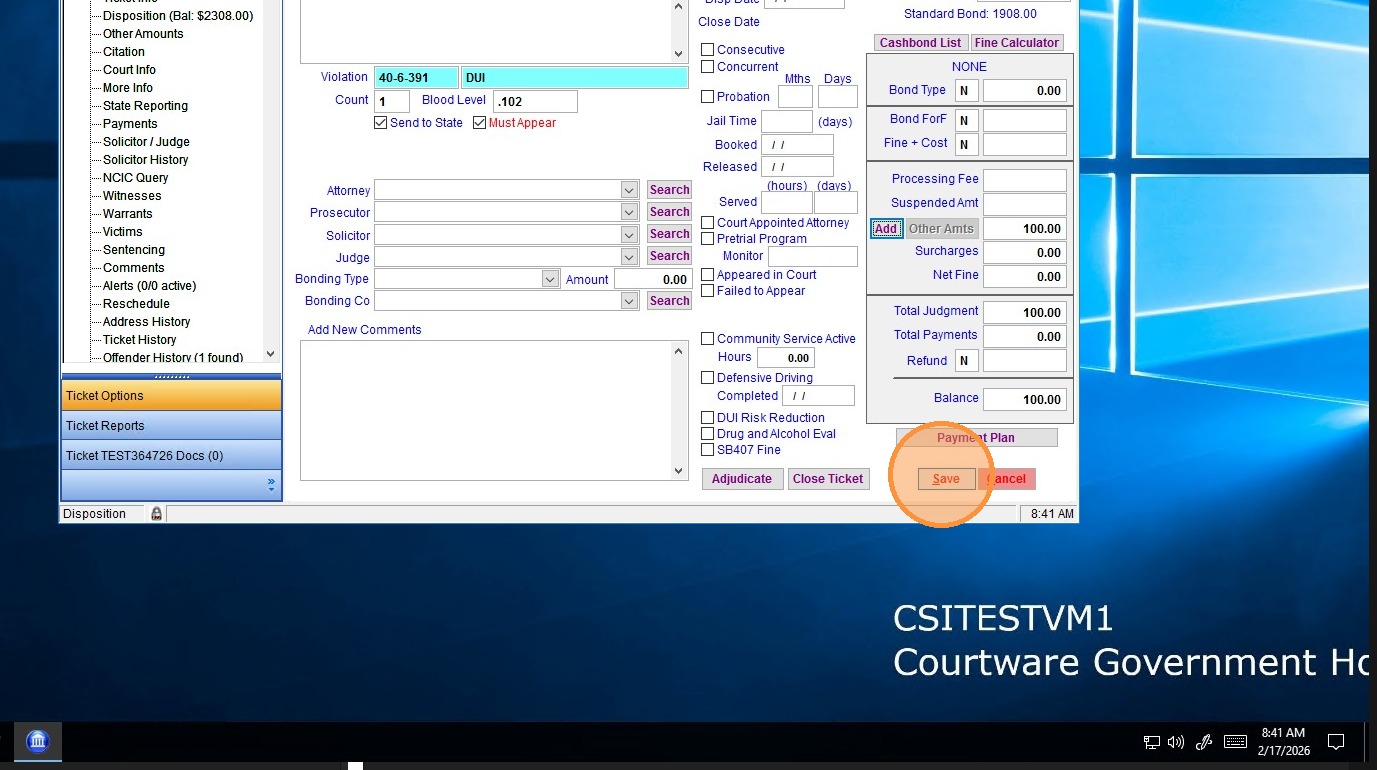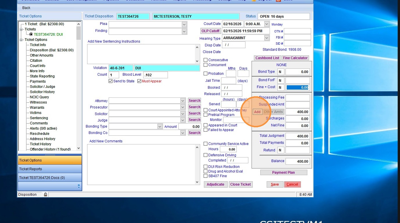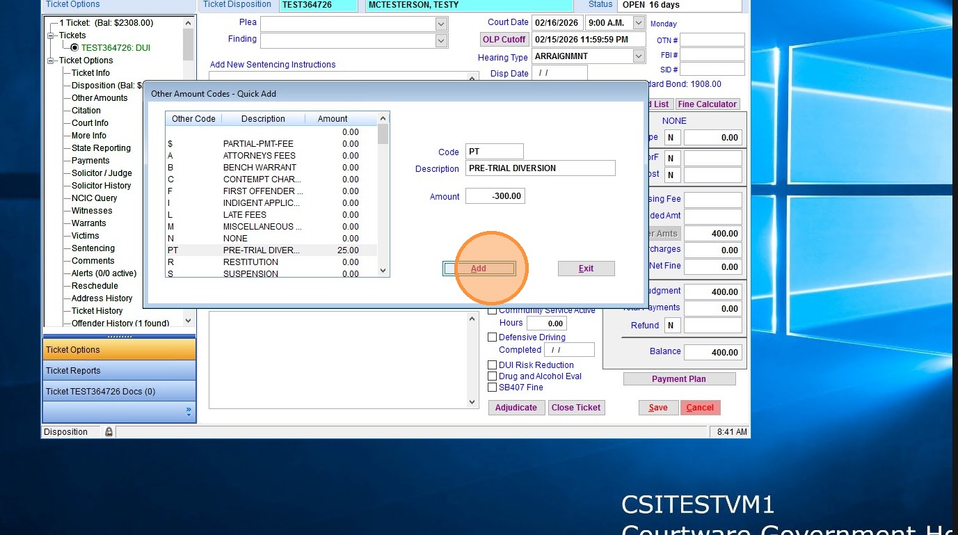 1. From the Disposition page in the ticket in question, click "Add" to add an "other amount"