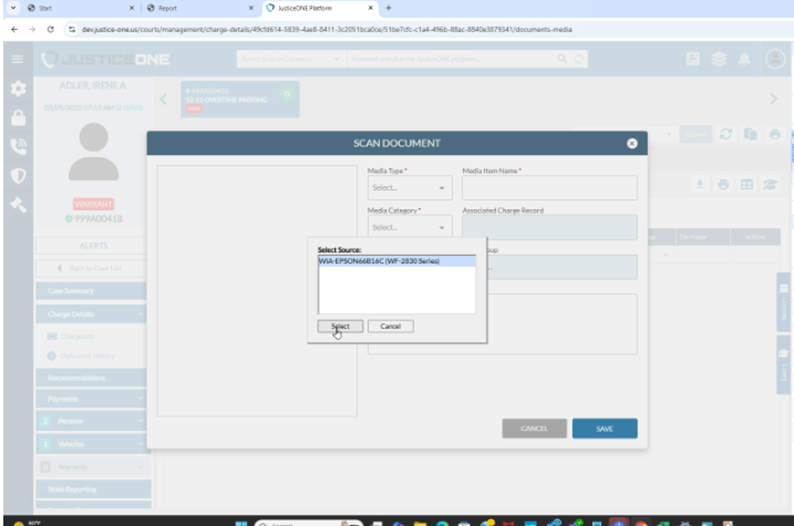 of JusticeONE® to connect to a scanner device.)